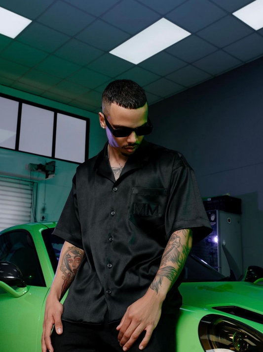 Micael Matthews Black Satin Shirt